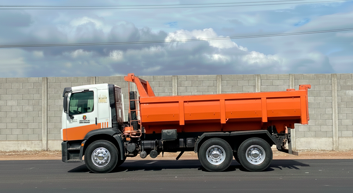 CAMINHÃO MUNCK 16M³, BASCULANTE COM CABINE AUXILIAR E GUINDASTE HIDRÁULICO