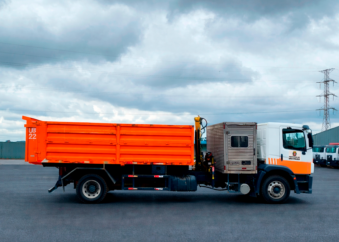 VEÍCULO UTILIZADO PARA REMOÇÃO DE MATERIAIS DE GRANDE PORTE, E COLETA PROGRAMADA DE GRANDES OBJETOS (CATA BAGULHOS).
