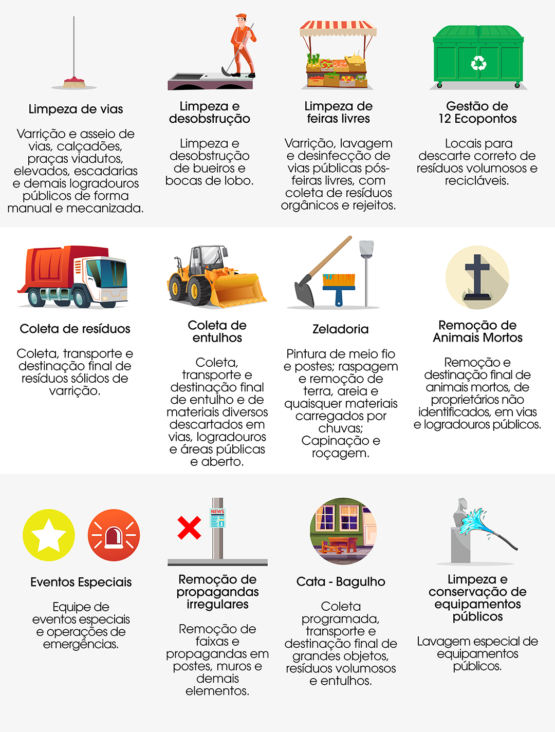 as vias e logradouros públicos de São Paulo, A limpeza do município envolve uma série de ações, com